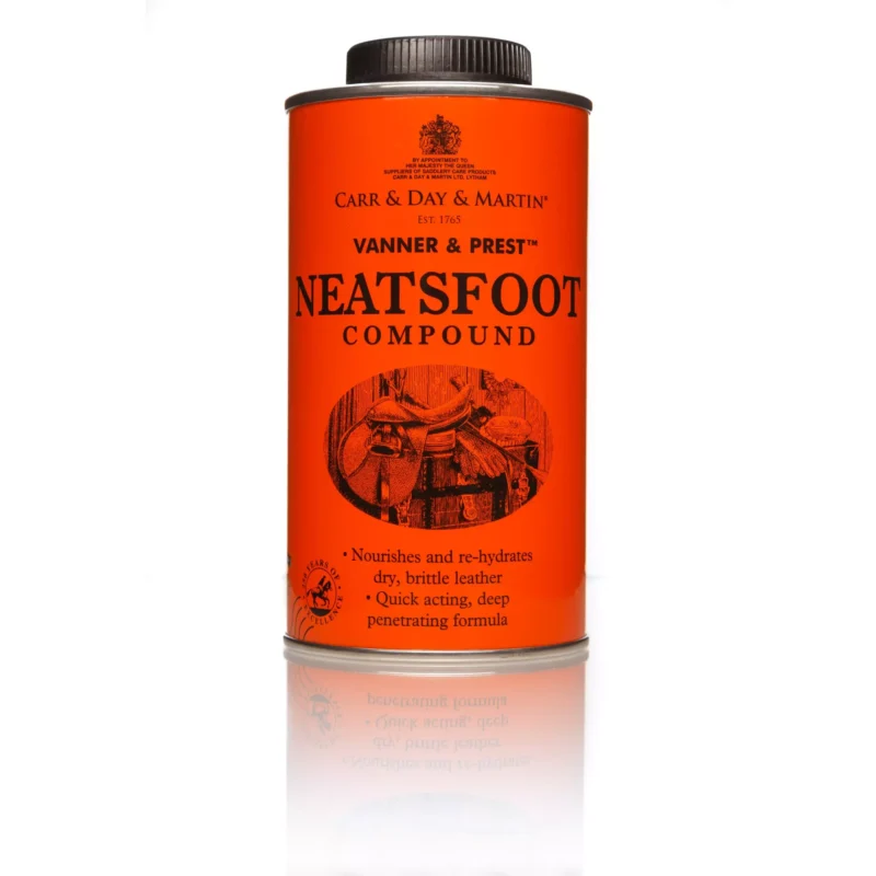 The Carr and Day and Martin Vanner and Prest Neatsfoot Compound’s fast acting and deep penetrating formula contains pure Neatsfoot Oil and mineral oils, designed to avoid stitching becoming rotten.