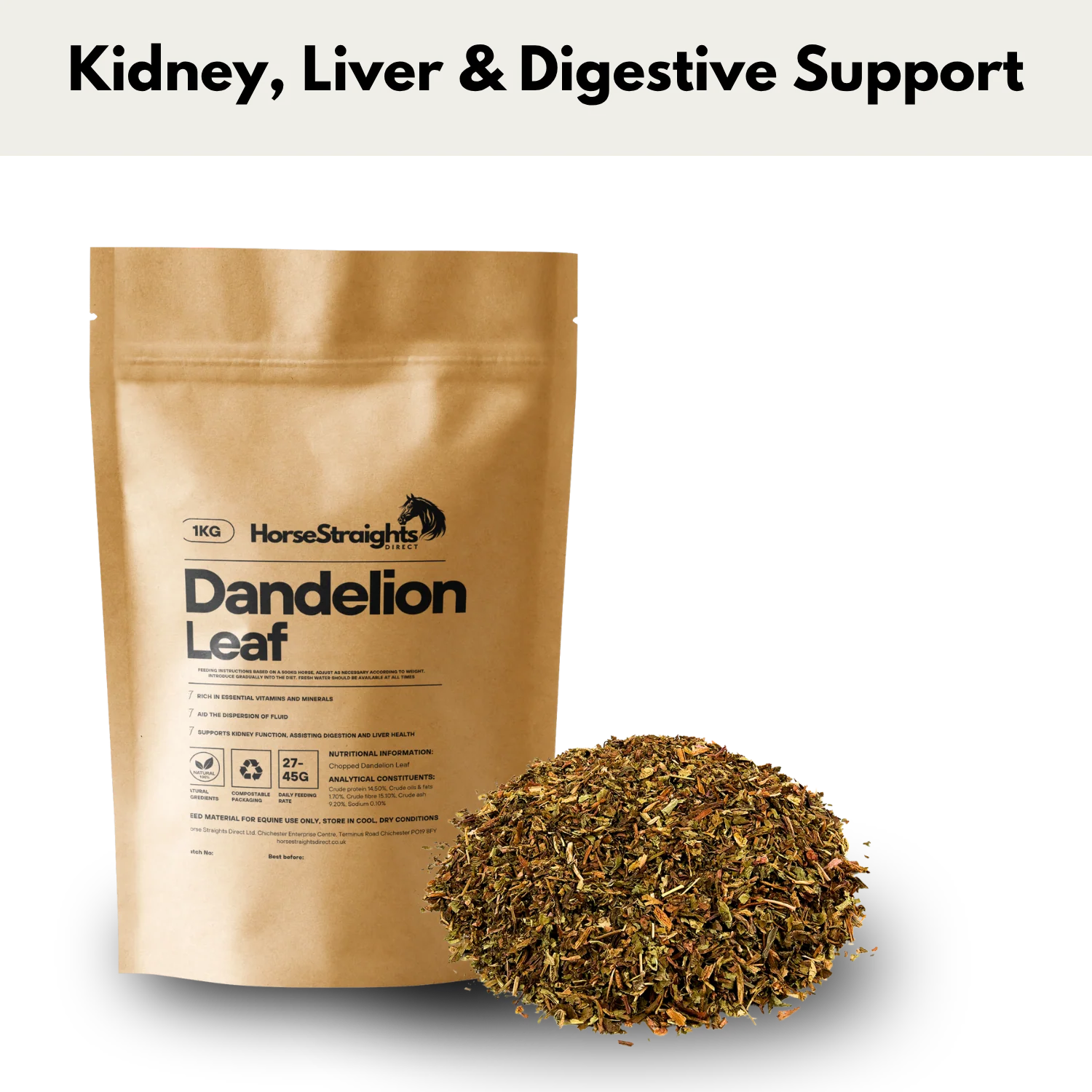 Dandelion leaves aid healthy kidney function and detoxification, flushing out harmful substances from the horse’s system. Dandelion leaves can aid digestion and support liver health.