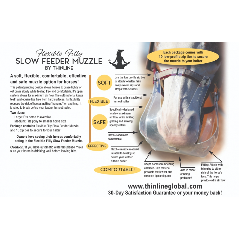 - The ThinLine flexible grazing muzzle is gentle on the skin, teeth, and lips. Softer, lighter, and safer.